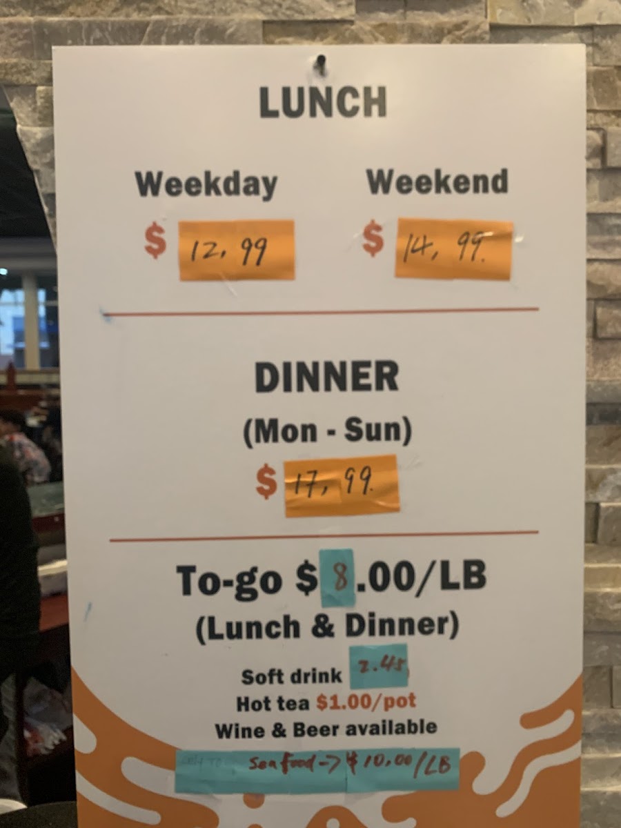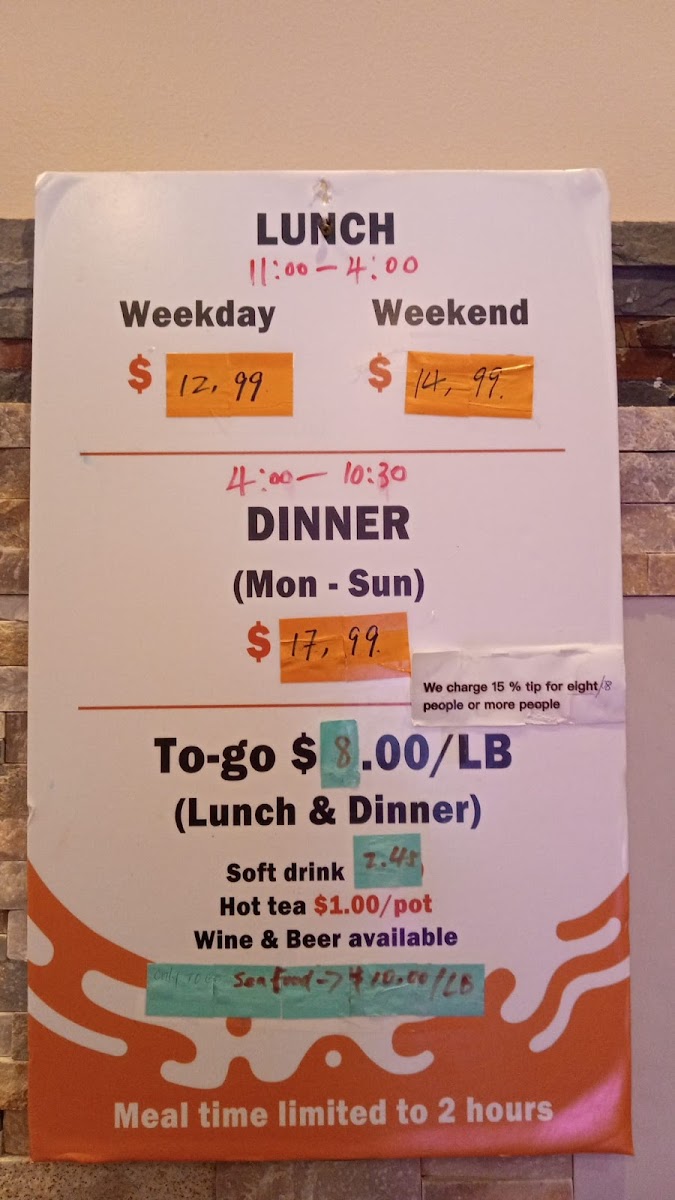 “ I love this place. I’m from Texas and None of the buffets (although very good) come close to the great options this place has! Food is coming out left and right and they stay on top of the food game. Servers were friendly and attentive. Clean overall and bathrooms were clean too. We went on a Saturday and seafood lunch was 10.99!!!! For two adults with waters it’s right around twenty and we left a generous tip because we really enjoyed this place! Give it a try! I had so many options for once I didn’t try the sushi but I bet it was amazing! The only con is parking is a little bit scarce and I don’t like parking in the back but we eventually moved the car to the front and ate in peace. Definitely coming back when we come to Orlando! ”